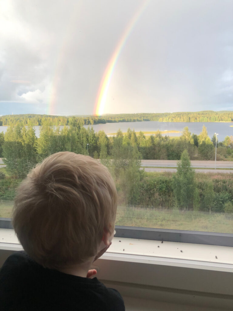 Ihan kotona keittiön ikkunasta voi bongata välillä ihmeellisiä näkymiä. Tämäkään puhelimella napsaistu kuva ei tehnyt oikeutta ehdalle näkymälle.